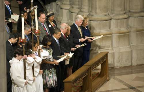 中新網1月22日電 新任美國總統奧巴馬在白宮的第一天以在華盛頓國家大教堂參加全國祈禱活動揭開序幕,之后和妻子米歇爾歡迎“數以百計的特別嘉賓”蒞臨白宮參觀。禮節活動完成后,便進入了繁忙的政務。