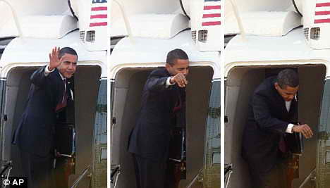 身高1米85的奧巴馬9日早上在白宮南草坪搭乘海軍陸戰隊一號直升機時頭部碰上了機艙門。他顯然錯誤判斷了機艙門的高度,腦袋撞上了機艙門。