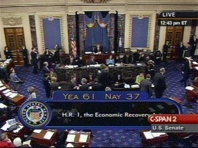 據悉,美參議院以61票對37票的投票結果批準了該經濟刺激計劃。美國總統奧巴馬則表示,這是個“好消息”。