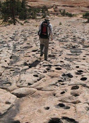 美國地質學家在美國亞利桑那州與猶他州交界處發現了大片恐龍足印和恐龍尾巴拖動的痕跡。據估計,這里曾經至少有1000只恐龍聚集。科研人員將這里形象地稱為“恐龍舞池”。