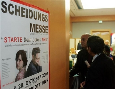 這次“離婚展”27日維也納老城區(qū)的瑪莉奧特旅館拉開帷幕。參加“離婚展”的律師、仲裁人在權(quán)利、義務(wù)、生活費(fèi)和兒童監(jiān)護(hù)方面給予參觀者建議。他們還可以向?qū)<易稍內(nèi)绾胃玫闹亟M家庭。