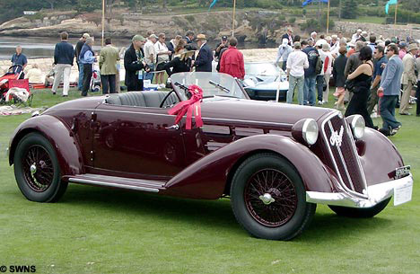 這輛舉世無雙的兩座跑車是阿爾法·羅密歐當年作為禮物送給墨索里尼的,因為在“大蕭條”時期,墨索里尼曾對轎車生產業做出過一定貢獻——出面干涉使生產商從瀕臨倒閉的境地“起死回生”。墨索里尼后來將這輛跑車的發動機功率由原來的68馬力改進到95馬力。