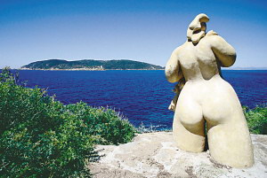 遠(yuǎn)望大海的裸體者雕像。