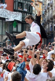 為期9天的公牛節,于6日早晨開始,人們把公牛趕到一起,在街上狂奔;人們傾巢而出,充塞街頭,最后跑向斗牛場,與牛共舞。