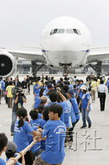 家長們加入進(jìn)來后機體才稍稍移動了數(shù)米,大家頓時擊掌歡呼。來自千葉市的小學(xué)二年級學(xué)生堀江昌大(8歲)睜大眼睛說,“手很痛,看到飛機真的動了大吃一驚”。