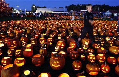 中新網10月6日電 綜合報道,美國緬因州坎伯蘭10月4日舉行盛大的南瓜節。人們紛紛制作各種精致的南瓜燈,試圖打破吉尼斯紀錄。