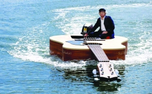 據報道,喬什的這艘“吉他船”名叫“馬頓號”,馬頓公司是澳大利亞的吉他制造廠商,而這艘“吉他船”正是由該公司設計定做的,它上面裝有舷外馬達,可以在水中自由地航行。