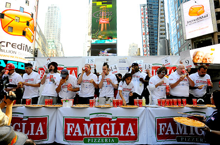 據(jù)《星島日?qǐng)?bào)》報(bào)道,二十四歲的切斯納特在美國Famous Famiglia匹薩餅連鎖店舉辦的第一屆吃匹薩餅大賽中,在短短十分鐘內(nèi)吞下了四十五片匹薩餅,奪取冠軍。