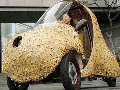 據悉,該車可乘1人,愛稱“Bamgoo”源于竹子的英文“bamboo”。它是由 45根竹子加工成900張長2米、厚1厘米的薄板后,再由竹器藝人花費1個月時間編制出了車體。