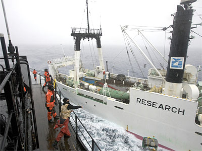 中新網(wǎng)12月29日電 據(jù)臺灣聯(lián)合新聞網(wǎng)報道,為阻止日本捕鯨船在南極捕撈鯨魚,美國環(huán)保組織海洋守護者協(xié)會的船只“史蒂夫•歐文”號的船員日前在南極洲莫森半島以北海域向日本捕鯨船“海幸丸”號投擲“臭彈”和裝有油漆的玻璃瓶。