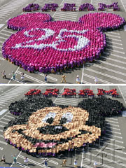 中新網3月13日電 據日本共同社報道,東京迪士尼樂園為紀念開園25周年,12日舉行眾人組成米老鼠圖案的活動。