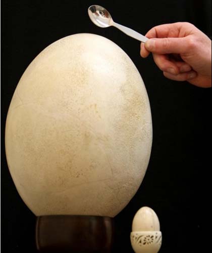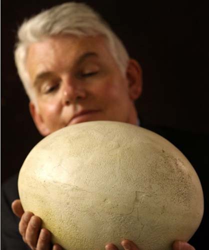 大象鳥比現在的鴕鳥還要大,17世紀在非洲滅絕。大象鳥蛋平均約1.76公斤,相當于200只雞蛋那么重。