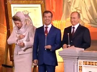 據俄羅斯新聞網報道,俄總統梅德韋杰夫和總理普京20日出席了在莫斯科救世主大教堂舉行的復活節祈禱儀式。然而,負責轉播節目解說的主持人在交代出場人物時將梅德韋杰夫和普京的頭銜混淆互換,這樣的口誤讓收看節目的觀眾忍俊不禁。