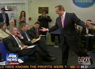 三家主要的有線電視臺(tái)都實(shí)況轉(zhuǎn)播了白宮新聞發(fā)布會(huì)。《人事》雜志記者約翰-吉茲的手機(jī)首先傳出鈴聲。吉布斯在聽到鈴聲后稱:“請(qǐng)放至震動(dòng),我們以前也是這樣作的。”當(dāng)手機(jī)再次發(fā)出聲音后,吉布斯走下講臺(tái),要求吉茲交出手機(jī),他隨后把手機(jī)扔給站在房間后面的一位助手。就在吉布斯回到講臺(tái),開始回答一個(gè)問(wèn)題時(shí),美國(guó)哥倫比亞廣播公司記者比爾-普朗特的手機(jī)又響了起來(lái)。已負(fù)責(zé)報(bào)道白宮事務(wù)25年的普朗特拒絕了吉布斯交出手機(jī)的要求,他離開了房間,人們發(fā)出一陣笑聲,普朗特五分鐘后回到他的前排座位。