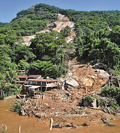 中新網1月3日電 巴西連日大雨,南部著名旅游島嶼安格拉杜斯雷斯元旦日凌晨發(fā)生山泥傾瀉,山腳下的小型豪華旅館Sankay被泥石流壓毀,最少19人死亡,仍有多人失蹤,相信死亡人數(shù)已多達40人。暫時未知道死傷者國籍。
