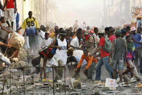 太子港街頭的搶掠事件已蔓延至市中心多個地區,星期一有數百名青少年爬過被震損的墻壁,闖入多間店鋪大肆搜掠,任何東西都不放過,其中牙膏更成為搜掠目標,因為可以用來涂在鼻孔下掩蓋全市充斥的腐尸味。