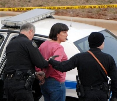 心懷不滿開槍泄憤的女教師碧施普(Amy Bishop)被戴上警車。
