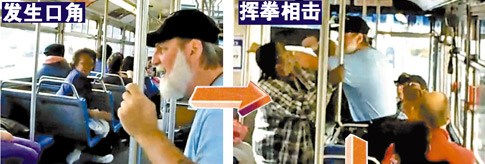 本報訊 “你為我擦鞋,收多少錢?”美國加州一名67歲的白人老翁在公交車上以種族歧視的言論挑逗一名黑人青年。后者在怒極之下欲動手,不料老翁更厲害,向黑人青年施以連環老拳,將他打至鼻破血流。