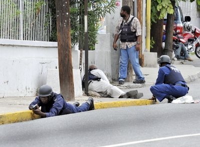 軍警周二在金斯敦各處布防,并在西區(qū)繼續(xù)沿街搜索,槍聲不時響起。金斯敦的學(xué)校周二停課,商店停業(yè)。西區(qū)黑煙滾滾,武裝直升機(jī)盤旋。目擊記者稱,3輛裝滿尸體的貨車在一間主要醫(yī)院的停尸間卸下尸體。