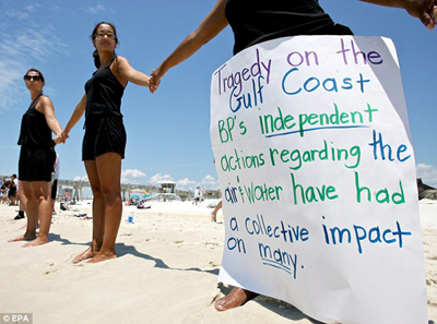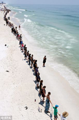 中新網6月27日電 綜合外媒報道,美國數百名群眾日前在佛羅里達州海岸手拉手排成“人鏈”,抗議英國石油公司經營的墨西哥灣油井泄漏事件。