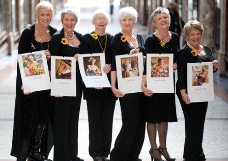 這本2010年掛歷不同于黑白照,將會以彩照記錄她們做園藝、烘制蛋糕和織毛衣的家居情景。6人除了佩帶珍珠項鏈和太陽花外,她們將裸體展現自己的笑容。