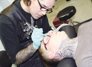 據(jù)悉,馬修除了面部外,幾乎全身上下都文滿了各種五花八門的文身圖案,馬修甚至連脖子上都文滿了圖案,使他看起來(lái)就好像穿了一件高領(lǐng)內(nèi)衣一樣。而這段“文眼鏡”視頻顯示,一名文身藝術(shù)家竟用電動(dòng)文身針在馬修的眼睛部位文了一副和真眼鏡大小一模一樣的黑框眼鏡,令馬修看起來(lái)就像真的戴了一副“黑框眼鏡”一樣!
