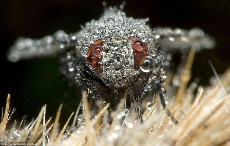 為了呈現出昆蟲特別的一面。日前,米羅斯瓦夫在凌晨3點時分就來到樹林中。那時,小東西們還在睡覺,身上則披掛著滴滴露水,顯得格外晶瑩剔透。米羅斯瓦夫用照相機拍下了它們有趣的樣子,鏡頭距小昆蟲僅幾毫米。