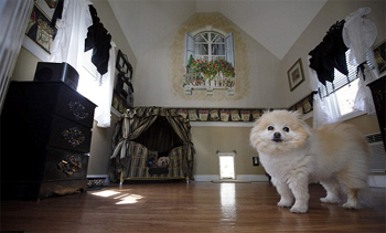 它們的主人、47歲的卡西斯說:“我的狗就是我的生命。”她豪擲2萬美元打造了這個狗窩?ㄎ魉惯表示,接下來她將為這些寵物們添置一臺等離子電視機,“它們喜歡看動物世界!”