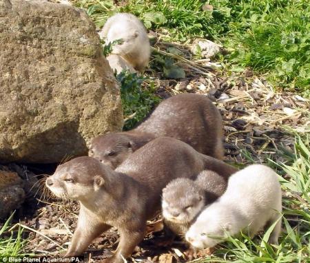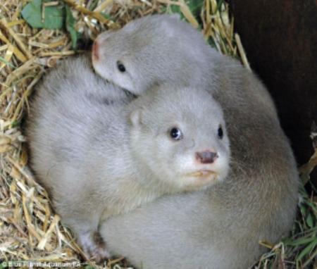 英國柴郡藍色星球水族館3月底誕生兩只水獺寶寶,但是它們的皮毛呈現白色,讓人不禁懷疑它們是否患有白化癥。