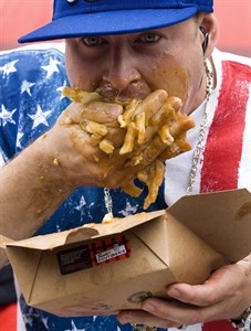 中新網5月24日電 據香港《星島日報》報道,來自芝加哥的帕圖奈堤在10分鐘內吞下13磅拌有醬汁及芝士的薯條,于周六成為世界食薯條冠軍。