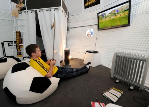 讓人羨慕的是,房間內有一個裝滿了食物的冰箱、一臺計算機、一臺PS3游戲機、一張雙層床、一個吸塵器、免費洗衣服務等。另外,還有專人幫亞當桑塔羅薩打掃、洗衣服。不過,他坦言,剛開始的幾天遇到一些麻煩,那就是人們都很好奇,從足球的窗戶往里“偷窺”。