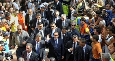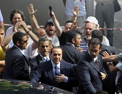 事實(shí)上,早在6月2日出席在羅馬舉行的意大利共和國成立日紀(jì)念活動時,貝盧斯科尼就遭到了一陣起哄的口哨聲。自那以后,只要是出現(xiàn)在公開場所,貝盧斯科尼總會聽到民眾的起哄。