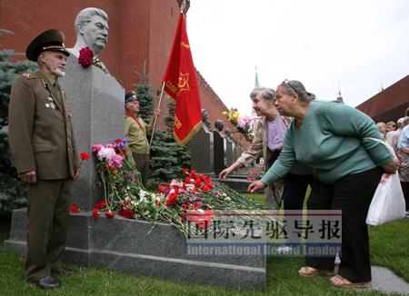 在去年的一次全國民調中,斯大林被評為俄歷史上第三大最得人心的人物。就在最近,莫斯科市中心地鐵站的大理石大廳里出現了贊美斯大林的鍍金文字。也有西方媒體評論說,克里姆林宮意圖重塑蘇聯時代的大國聲譽,而使蘇聯邁上工業化道路進而成為美國的強勁敵手,以及領導蘇聯紅軍戰勝德國法西斯的正是斯大林。