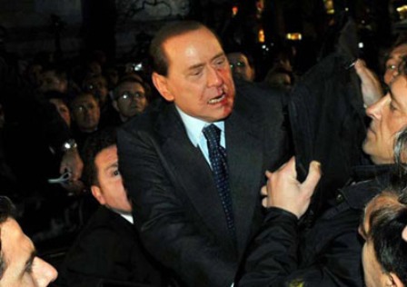 不曾想,貝盧斯科尼的“預言”神奇地成為現實,稍后他在集會上給人簽名時,就被一名男子用一件米蘭大教堂的模型重重地擊中臉部,導致鼻骨骨折,兩顆牙齒松動,嘴唇大量出血,被送往醫院治療。