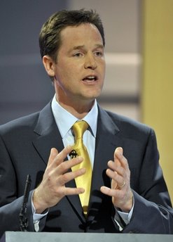 中新網4月19日電 綜合媒體報道,英國自由民主黨領袖尼克.克萊格在英國三黨領袖電視辯論中的出色表現,使自民黨得以在英國競選中取得領先地位。