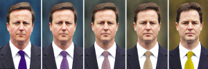 據(jù)英國(guó)媒體17日?qǐng)?bào)道,人們發(fā)現(xiàn),新當(dāng)選的英國(guó)首相卡梅倫和他的副首相克萊格實(shí)在太過(guò)相似,簡(jiǎn)直像雙胞胎。難怪英國(guó)選民們?cè)谕镀睍r(shí),越來(lái)越難以分清卡梅倫和克萊格了。有人將他們的照片合成了一個(gè)人物,還取了個(gè)新名字——“克萊格倫”。