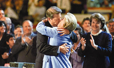 戈爾與妻子于2000年當眾熱吻,成為一時佳話。