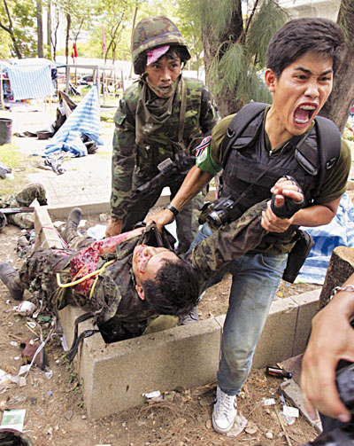 而泰國(guó)總理阿披實(shí)29日向外國(guó)媒體強(qiáng)調(diào),政府軍武力鎮(zhèn)壓紅衫軍的行動(dòng)并未過(guò)當(dāng),他同時(shí)邀請(qǐng)媒體參與獨(dú)立委員會(huì)調(diào)查的公聽(tīng)會(huì)。