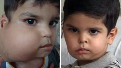 伊拉克3歲男孩臉長(zhǎng)12磅腫瘤 在英國(guó)成功切除(圖)
