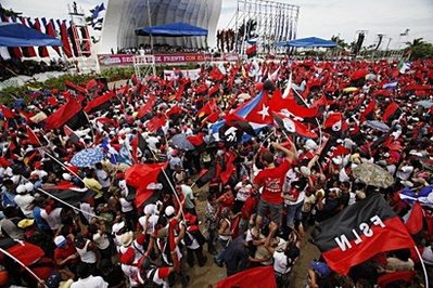 1979年7月19日,桑地諾民族解放陣線(桑解陣)帶領尼加拉瓜人民推翻了索摩查家族長達40余年的專制統治,入主首都馬那瓜,聯合社會各界政治力量成立了民族復興政府。但桑解陣在1990年全國大選中敗北,成為在野黨。之后,桑解陣幾經沉浮,于2006年11月重新成為執政黨。桑解陣總書記奧爾特加在2006年11月的尼加拉瓜總統選舉中勝出。