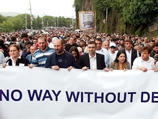 5月26日格魯吉亞反對派在首都第比利斯舉行大規模游行示威活動,從全國各地趕來的約6.5萬名支持者參加。為了迫使總統薩卡什維利下臺,反對派宣布準備采取激進措施,封鎖鐵路、國道和機場。反對派“為了統一的格魯吉亞”運動領袖別謝利婭在議會大廈前的集會上宣布:“今天我們將封鎖鐵道,從今天起我們將開始最激進的行動。”反對派保守黨領袖濟濟古里宣布:“我們計劃首先和平封鎖鐵路,然后是機場。我們的行動將是和平的,但極其激進。”反對派“格魯吉亞道路”黨領袖祖拉比什維利宣布:“我們將用汽車封鎖中央(公路)干線,然后步行去封鎖鐵路。”