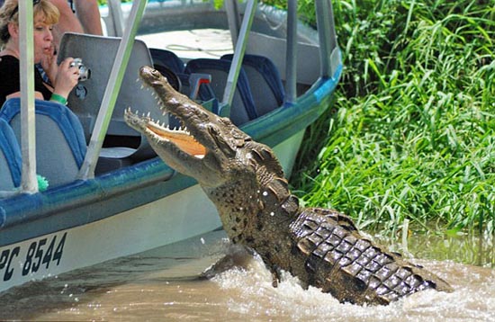 根據保羅的描述,當看到河上那只懶洋洋的鱷魚后,船上的導游就用木棍敲打水面,希望能吸引鱷魚更靠近一些。“鱷魚果然隨著木棍游來,越來越近,當大家都還沒轉過神時,那只原本溫順的鱷魚突然躍出水面,張著血盆大口朝那位女游客撲過去。”這時船上的所有游客都尖叫起來,大家都拼命向后退。