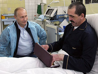 據(jù)俄羅斯新聞網(wǎng)報(bào)道,7月30日俄羅斯總理普京前往莫斯科維什涅夫斯基外科醫(yī)學(xué)研究所探望一個(gè)多月前遇刺后在此療傷的印古什自治共和國總統(tǒng)葉夫庫羅夫,并且贈送一把短劍祝賀當(dāng)日滿46周歲的他生日快樂。
