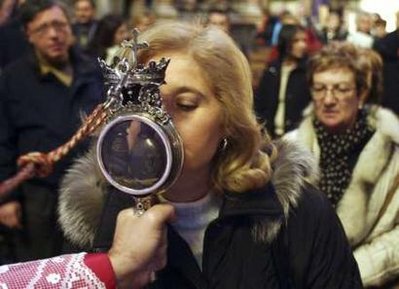 上周,一名51歲的男子因感染甲流,在那不勒斯醫院不治身亡,成為意大利第一例甲流致死病例。由此,周一,天主教那不勒斯教會與城市當局共同決定,為預防甲流病毒大規模傳播,將禁止信徒在本月晚些時候開始的宗教節日上親吻裝有圣人血液的玻璃小瓶。從9月19日開始,這樽裝有天主教圣人圣亞努阿里烏斯血液的玻璃瓶將在那不勒斯市的主教座堂展出一周,展覽期間,無論前來膜拜的信徒有多么虔誠,也不能用嘴親吻瓶子,只能用額頭輕觸瓶子。