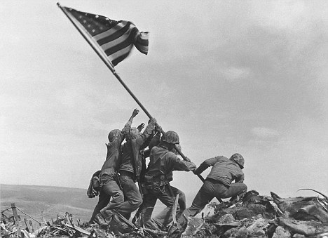 1945年2月19日至3月26日,美軍以7000名士兵死亡、2.6萬(wàn)名士兵受傷的慘重代價(jià)攻占了日軍控制的硫磺島。隨軍攝影師喬-羅森薩爾當(dāng)時(shí)拍下了一張名為《國(guó)旗豎立在硫磺島上》的經(jīng)典照片,并獲得了普利策獎(jiǎng)。美國(guó)戰(zhàn)后在弗吉尼亞州建造阿林頓國(guó)家公墓時(shí),以這張照片為模本制成了一尊雕像,以紀(jì)念在這場(chǎng)戰(zhàn)爭(zhēng)中犧牲的美國(guó)軍人。