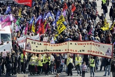 中新網(wǎng)3月24日電 據(jù)香港《大公報(bào)》援引外電報(bào)道,法國的鐵路工人、教師及公務(wù)員二十三日舉行全國罷工,令當(dāng)天的運(yùn)輸、教育等方面的公共服務(wù)受阻。工會(huì)希望他們的行動(dòng)能將總統(tǒng)薩科齊的改革計(jì)劃叫停。