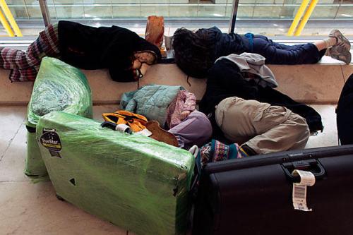 機場的顯示牌上,航班“取消”的字眼遲遲得不到改變,人們得到的是更多壞消息的傳來。