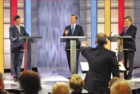 中新網4月21日電 據外電21日報道,英國大選的三位競選人將在當地時間周四展開新一輪的電視辯論。在第一次電視辯論引發關注熱潮之后,英國人普遍對將要開始新的唇槍舌戰抱以期待。