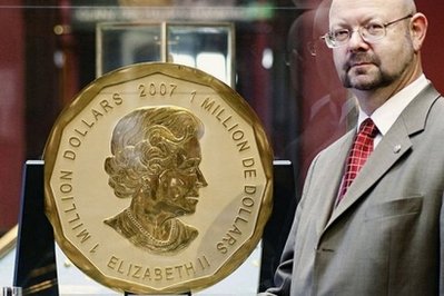 多羅森姆拍賣行11日說,這枚楓葉型金幣是2007年在加拿大鑄造的。金幣已經被吉尼斯紀錄大全確認為是世界最大的,具有的面值為100萬加拿大元。