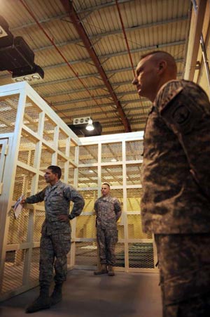 目前,巴格拉姆基地多數的恐怖疑犯都被囚于一個帳篷拘留所中,但在本月內將會有六百四十名囚犯得以遷往環境較佳的帕爾旺拘留所。掌管這座“新關塔那摩”的美軍律師馬克.馬丁斯指,關塔那摩灣監獄和伊拉克的阿布格里卜監獄都被指違反法律,但帕爾旺拘留所將會被視為一座合理對待囚犯的監獄,因為它將會秉持遵守法治和合理程序的兩大原則,并將致力協助囚犯在出獄后重新融入社會。他說這是美國在對待恐怖疑犯上的“真正進步”,而監獄的運作將會具有透明度。